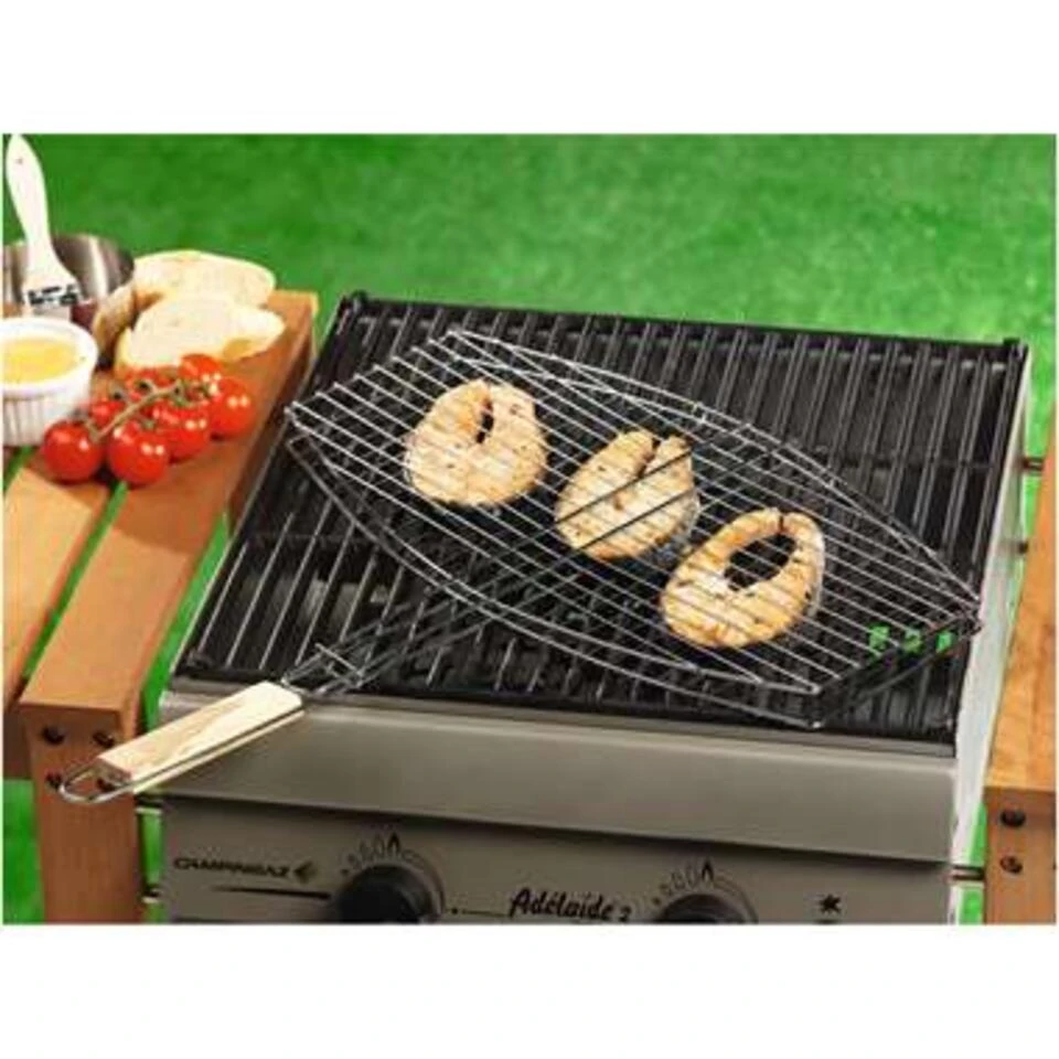 Barbecue braadrooster ovaal. Een handig braadrooster voor op de barbecue om bijvoorbeeld diverse soorten vlees of vis mee te braden. Materiaal: staal. Formaat: ongeveer 45 x 25 cm. BBQ accessoires en benodigdheden.