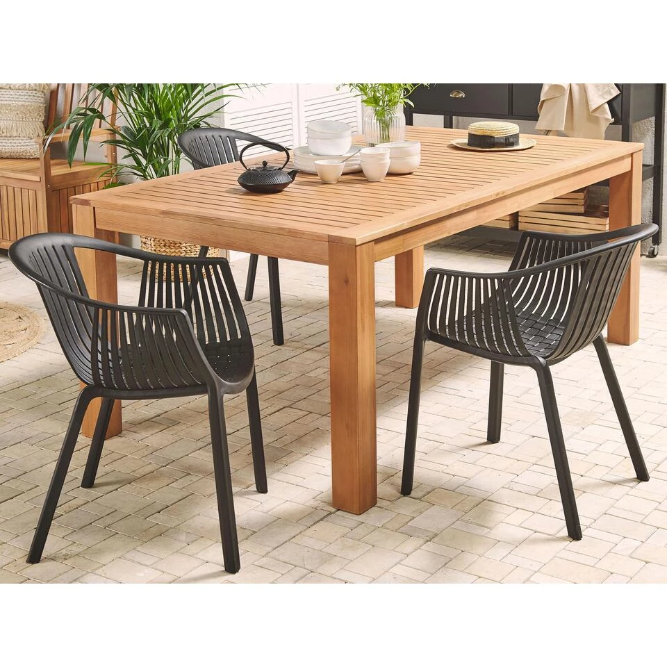 Belangrijkste eigenschappen: Perfect voor eten in grotere groepen, De natuurlijke houtnerven en kwasten maken elk stuk uniek, Modern terras- en tuinmeubilair, Geschikt voor binnen- en buitengebruik, Robuust frame
