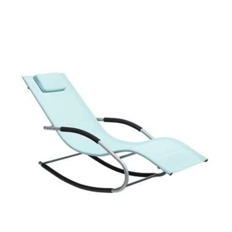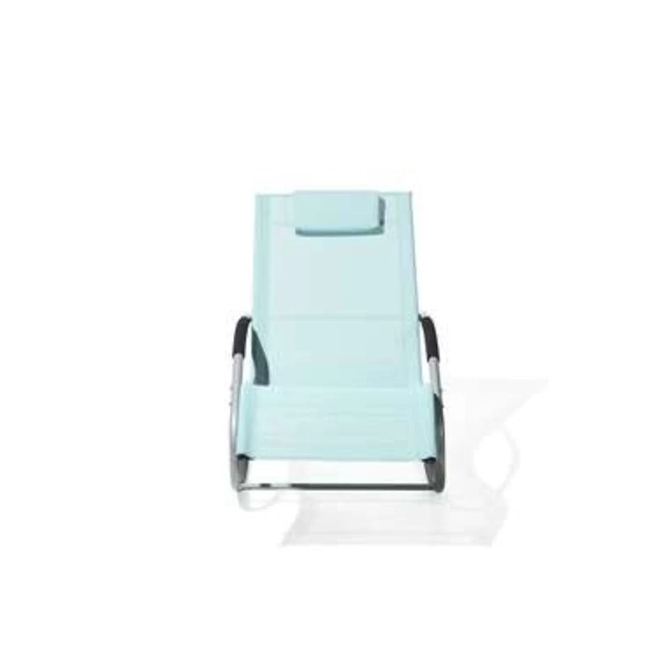 Mintgroene ligbed om in te schommelen. Dit ligbed onderscheidt zich door zijn eigentijdse, dynamische ontwerp en zal een blikvanger zijn in elke tuin, balkon of terras. Het is gebouwd met stalen geleiders en uitgerust met antisliphoezen voor een soepele en ontspannende schommelbeweging. De ergonomisch gevormde zitting is gemaakt van stof en heeft een gecapitonneerde hoofdsteun voor extra comfort.