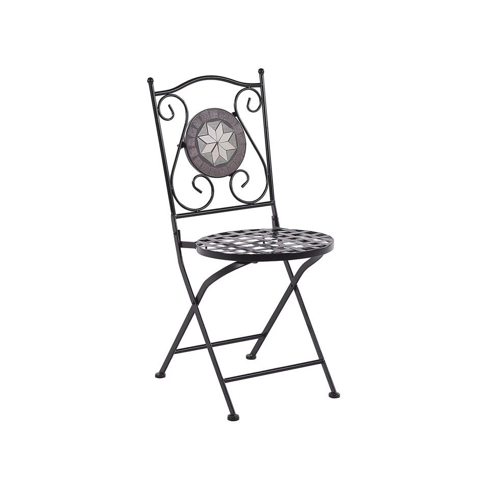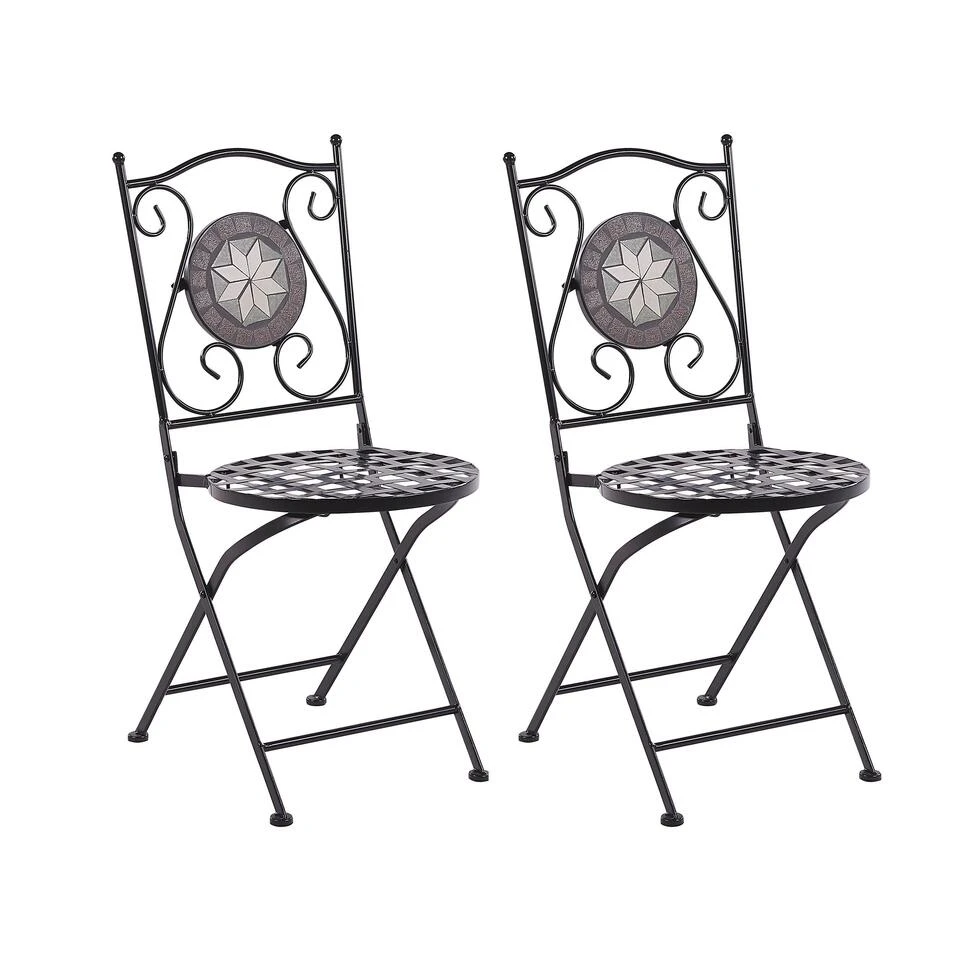 Klapstoelen in vintage stijl. Geniet van een kopje thee in de zon met deze charmante tuinstoelenset. Het is perfect voor kleine en grote ruimtes, heeft gebeeldhouwde rugleuningen en een intrigerend mozaïekpatroon gemaakt van keramische tegels. Style de stoelen in je achtertuin of balkon om een knus hoekje te creëren waar je heerlijk kunt ontspannen. De stoelen zijn gemaakt van metaal en hebben geen last van regen en dankzij de opklapfunctie zijn ze supergemakkelijk op te bergen.