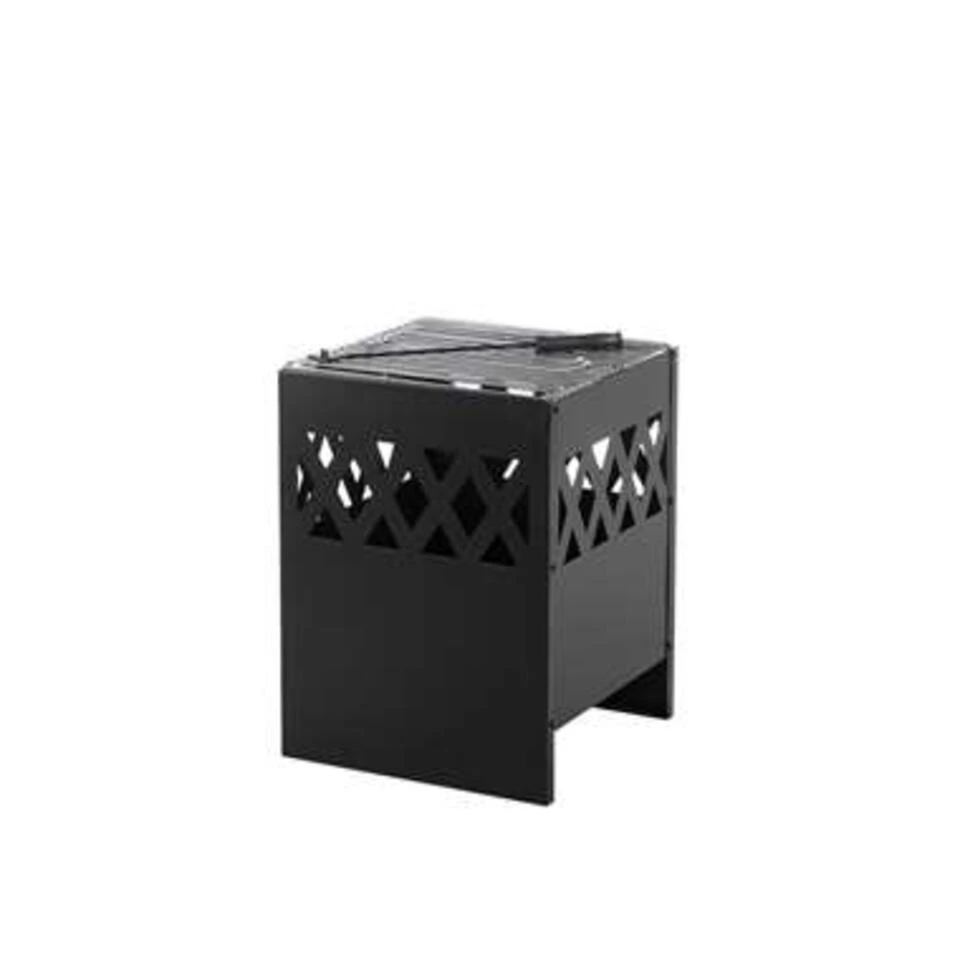 Stabiele stalen firepit met chromen grill. Breng warmte en sfeer in jouw tuin! Deze charmante firepit verfraait elke buitenruimte en creëert een gezellige sfeer. De firepit kan gemakkelijk worden gevuld met hout of kolen. De set bevat alle benodigde elementen en accessoires.