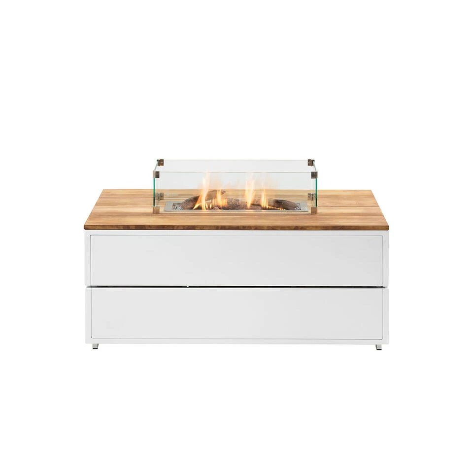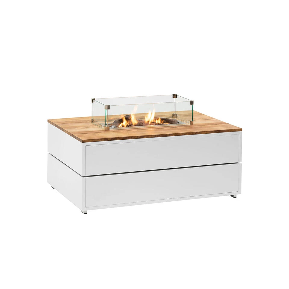 Ook op minder warme zomerdagen of tot laat in de avond lekker comfortabel buiten zitten? Maak jouw lounge compleet met de Cosipure vuurtafel 120 x 80 cm wit met teakhouten blad.