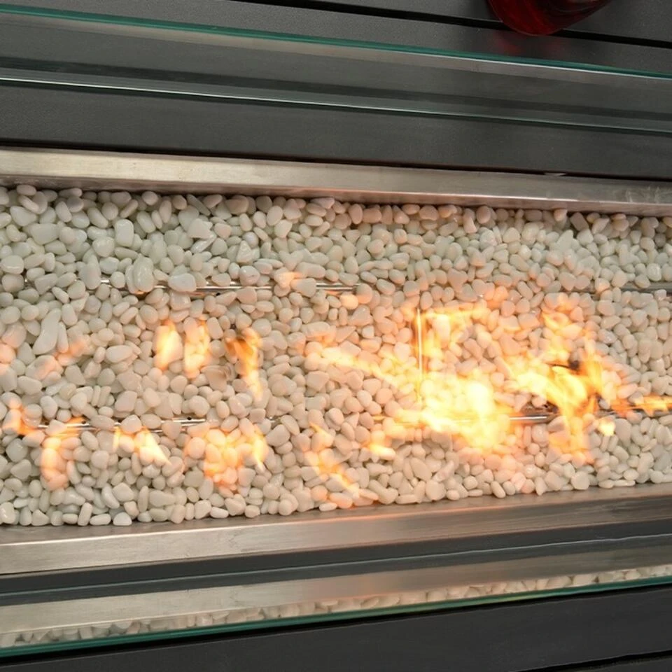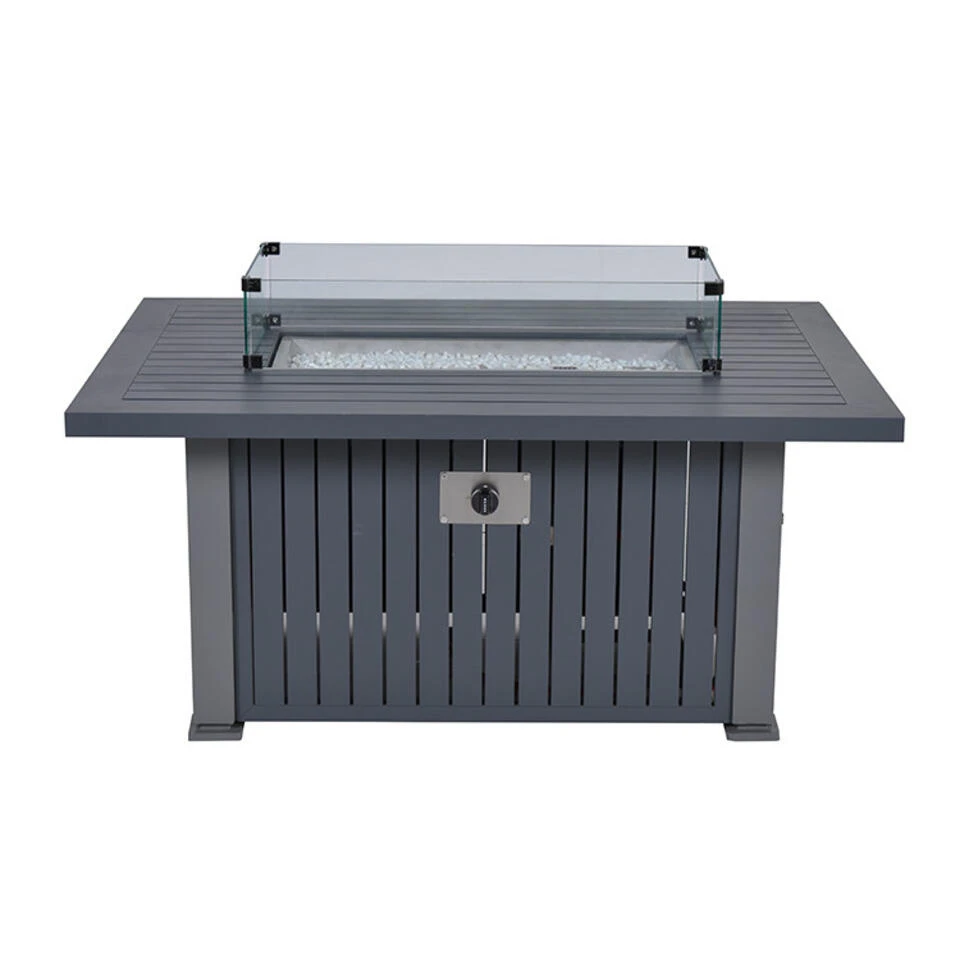 Ben je op zoek naar een heerlijke lounge vuurtafel voor bij je loungeset? Met deze Cozy living Albufeira sfeerhaard zit je er gegarandeerd lekker warm bij. Met het grote voordeel dat je geen last hebt van rook of vonken. Deze Albufeira Cozy Living sfeerhaard is vervaardigd uit een onderhoudsvrije RVS brander en aluminium blad afgewerkt met weerbestendige aluminium planken. De RVS-brander wordt mooi weggewerkt door de meegeleverde witte stenen. Heb je kinderen en vind je de vlammen toch wat gevaarlijk? Dit is gemakkelijk op te lossen met een glazen langwerpige ombouw. De glazen langwerpige ombouw is standaard meegeleverd en is ook los te bestellen. De Albufeira sfeerhaard heeft het voordeel dat de gasfles er onder kan worden opgeborgen. Geen last van een gasslang of gasfles op je terras. De gas vuurtafel gemakkelijk te ontsteken door middel van een elektrische ontsteking. De hoogte van de vlam is zelf in te stellen met een handige draaiknop. De ontsteking en draaiknop bevinden zich aan de zijkant van de lounge vuurtafel. De gas vuurhaard heeft een breed tafelblad waardoor je nog ruimte hebt voor je hapje en drankje. Daarnaast heeft de gastafel een prettige hoogte van 61 cm en is daarmee geschikt bij vele loungesets. De afmeting van de vuurtafel is: B 132 x D 89 x H 61 cm. Gemaakt van carbon black aluminium met kunstof planken. Bij de vuurtafel wordt geen glasfles meegeleverd.