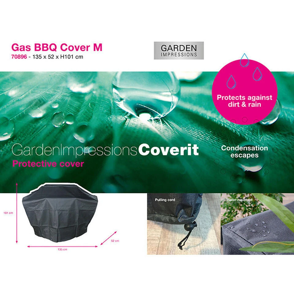 Ben je op zoek naar een beschermhoes voor jouw barbecue? Deze prettige barbecue afdekhoes van kwaliteitsmerk Garden Impressions zorgt ervoor dat je langer plezier zal hebben van je barbecue. Om de levensduur van je barbecue te verlengen, raden wij aan om deze af te dekken. De beschermhoezen van Garden Impressions zijn gemaakt van hoogwaardig polyester met een ademende coating. Deze coating zorgt ervoor dat hoes waterbestendig is. De hoes is niet volledig waterdicht, maar waterafstotend. Het is een flexibele ademende coating, waardoor de hoes in de wintermaanden ook nog flexibel blijft. Doordat de beschermhoes niet volledig waterdicht is, is aan te raden om een afstand te creëren tussen de barbecue en de hoes zodat het water er gemakkelijk af kan stromen. De barbecue hoes kan gemakkelijk om de barbecue worden bevestigd. Onderaan de hoes zit een elastieken band om de hoes strak te houden. Barbecue afdekhoes is geschikt voor een barbecue in maat M.