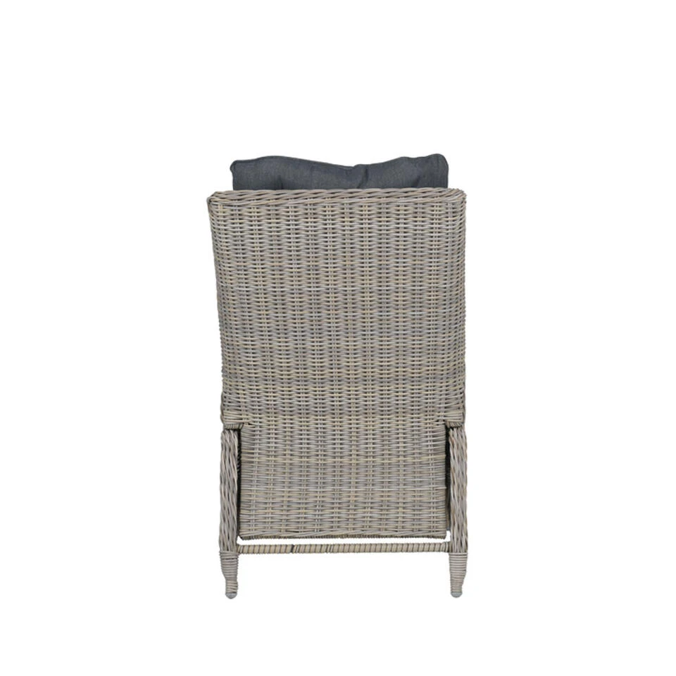 De Marbella verstelbare tuinstoel is vervaardigd uit een onderhoudsvrij aluminium frame en weerbestendig half rond wicker kunststof vlechtwerkdraad in de kleur vintage willow. Het draad heeft een dikte van maar liefst 6,5mm, wat zorgt voor een robuuste uitstraling. Wicker is een stevig en duurzaam kunststof, waardoor je jarenlang kunt genieten van de Marbella stoel.
