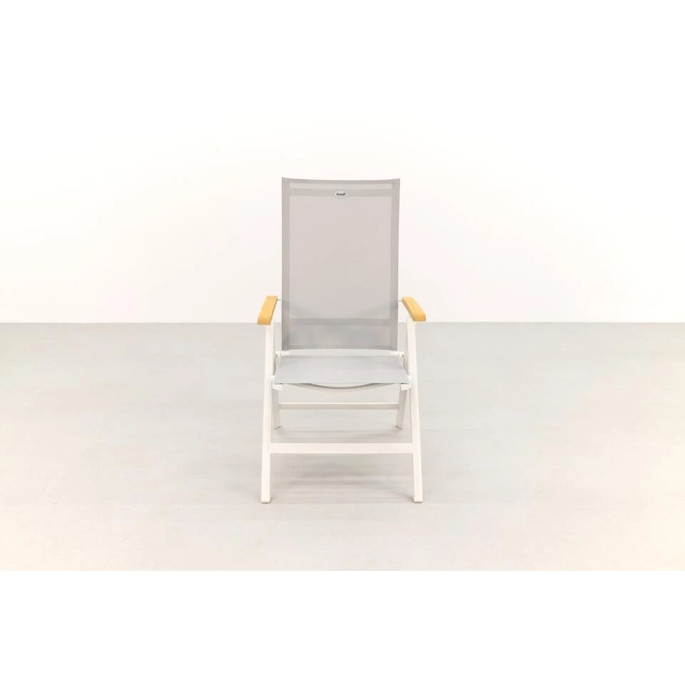 De Napoli tuinstoel van het bekende tuinmeubelmerk Hartman heeft een aluminium frame en een houten armleuning. Tussen het frame is een textileen doek gespannen. Dit doek zorgt ervoor dat de erg lekker zit. De stoel is verstelbaar zodat deze een goed zitcomfort biedt.
