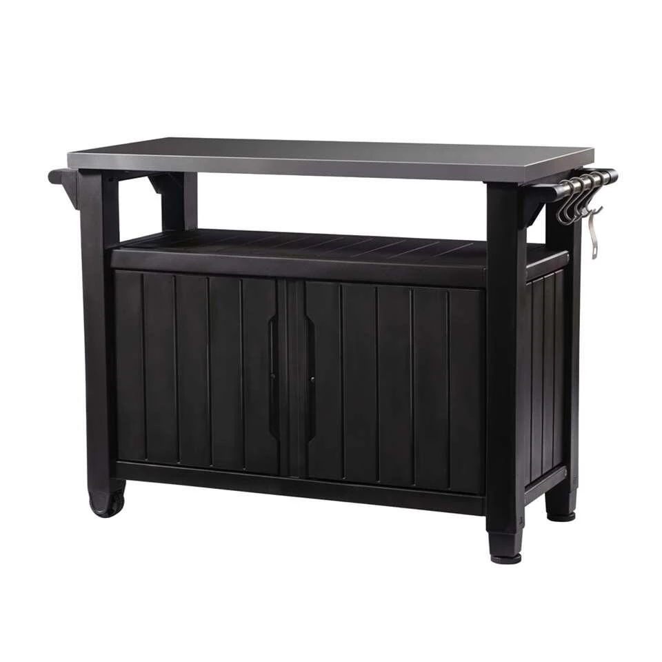 De Unity XL van het merk Keter is een multifunctionele barbecuetafel die ervoor zorgt dat je dicht bij je gasten blijft tijdens barbecues en tuinfeesten. Op het roestvrijstalen tafelblad heb je meer dan genoeg serveerruimte en maak je gemakkelijk eten en drinken klaar.