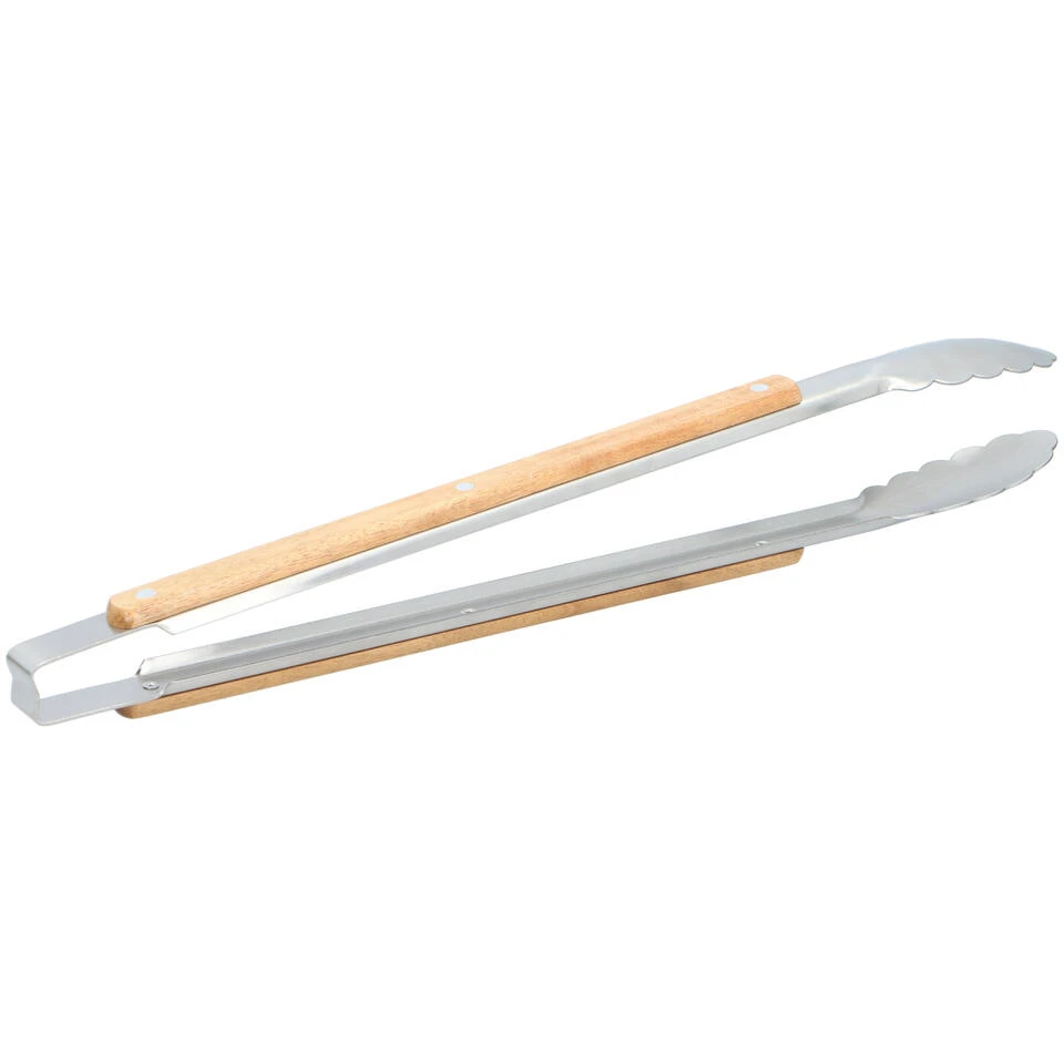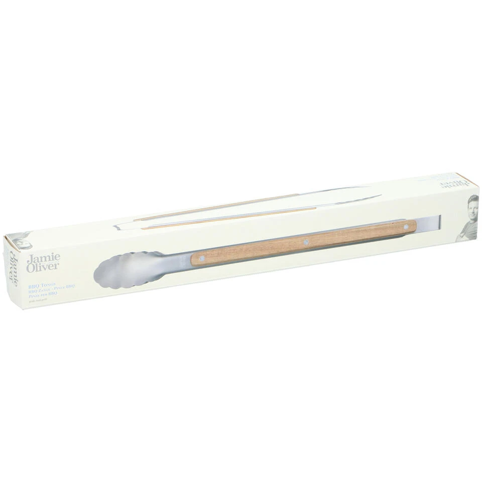 Barbecue/bbq tang Jamie Oliver 46 cm keuken benodigdheden. Handige BBQ grijptang om mee te koken, bakken, braden en uitserveren. De tang heeft houten grijpers die geen hitte overdragen. Ook geschikt om te gebruiken als saladebestek/slabestek/saladetang/slatang.