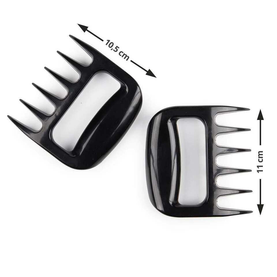 De klauwen kunnen ook worden gebruikt als vleeshouder, want ze zijn ideaal voor het snijden van grotere stukken vlees of als draaggereedschap zodat je je niet verbrandt. De set is gemaakt van hoogwaardig en duurzaam kunststof, bestand tegen stoten en beschadigingen. De ruimte in het knokkelgedeelte zorgt voor een comfortabele en goede grip. Het kleine formaat maakt de set ideaal voor picknicks of kamperen. Na gebruik kunt de vleesklauw gemakkelijk reinigen, ook geschikt voor de vaatwasser.