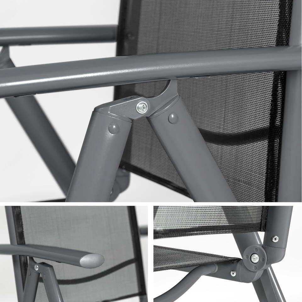 Deze elegante tuinklapstoel met hoge rugleuning is ideaal voor ontspannende uurtjes in de tuin of op het terras. Het synthetische gaas is duurzaam, past zich perfect aan het lichaam aan en zorgt voor een goede ventilatie tijdens het zitten. De rugleuning is verstelbaar in zeven kantelniveaus. Bovendien is de stoel heel licht, omdat het basisgestel van aluminium is.
