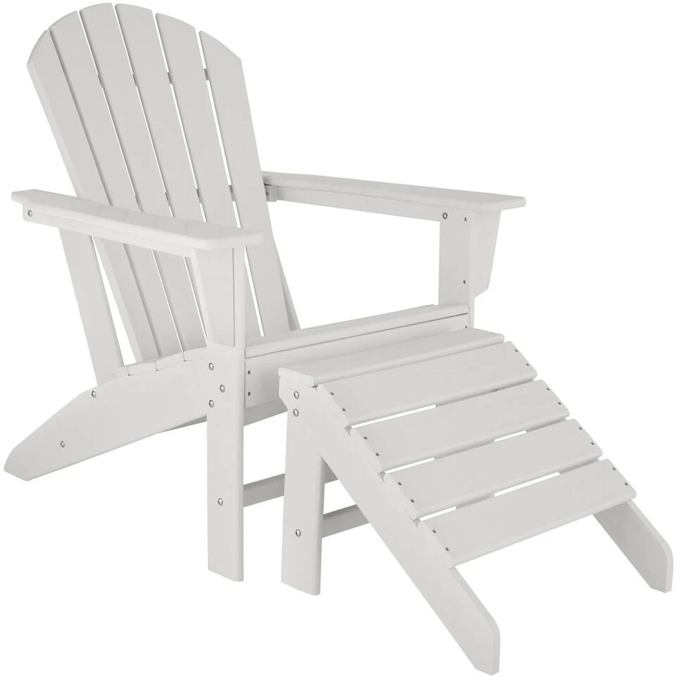 Creëer een fijne plek in je tuin of op het balkon met de combinatie van tuinstoel en voetbankje. Het karakterstieke design van de stoel en het voetbankje maken een gezonde zithouding met veel comfort mogelijk. De weerbestendige kunststof in houtlook is uiterst kan goed tegen vuil of wisselende weersomstandigheden. De brede armleuningen bieden plaats voor drankjes, boeken of smartphone.