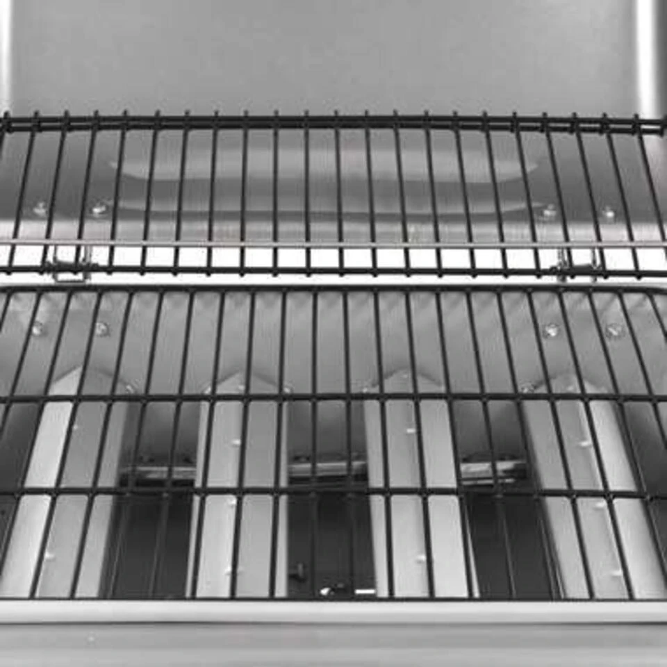 De gasgrill heeft een stijlvol en functioneel ontwerp. Hij heeft een groot kookoppervlak en een robuuste kap met een ingebouwde thermometer die de kooktemperatuur met precisie weergeeft. De zijtafels bieden extra werkruimte voor het maken van sauzen of je favoriete bijgerechten. Een afneembare vetopvangbak, die gemakkelijk schoon te maken is, wordt meegeleverd.