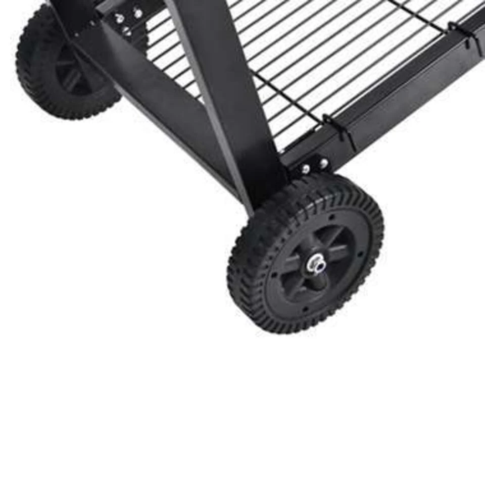 De barbecue heeft 2 roosters en een onderschap waarop je barbecue-accessoires kunt plaatsen. Deze houtskoolbarbecue heeft 2 wielen, zodat je de bbq eenvoudig kunt verplaatsen.